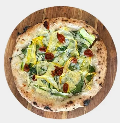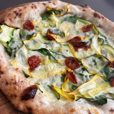 Surdejspizza // Mascarpone // Ravost // Squash // Citronskal // Spinat // Soltørrede cherrytomater // Oregano & Basilikumsblade