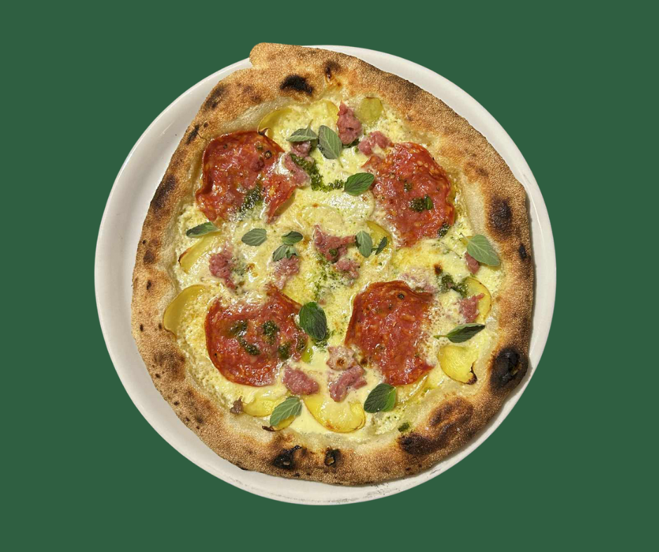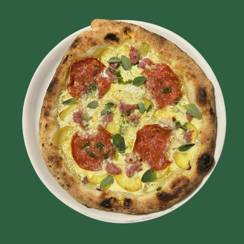 Mascarponecreme, Kartofler i Skiver, Stracciatella, Italiensk Salami & Italiensk Pancetta (bacon)