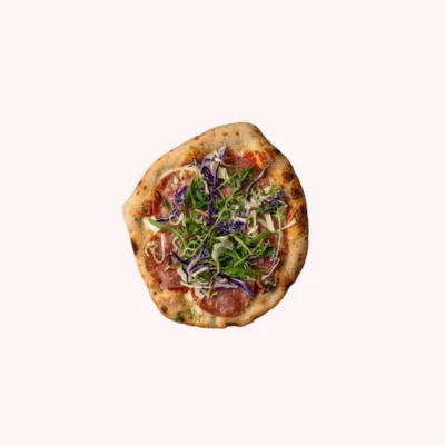 Surdejspizza // Tomatsauce // Fior Di Latte Mozzarella // Italiensk Salami Ventricina // 24-Måneders Parmesan // Tilføj Gratis: Frisk kålsalat